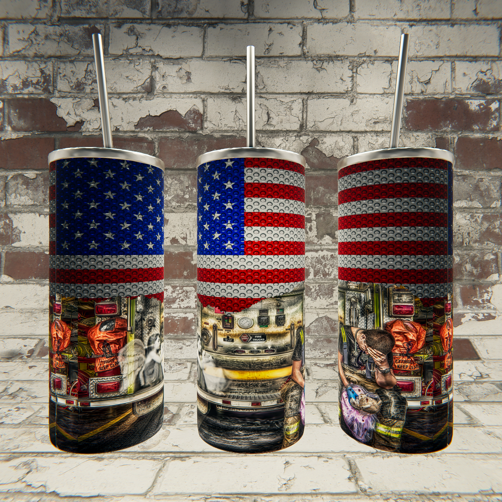 Fireman Studded Flag Angel Tumbler