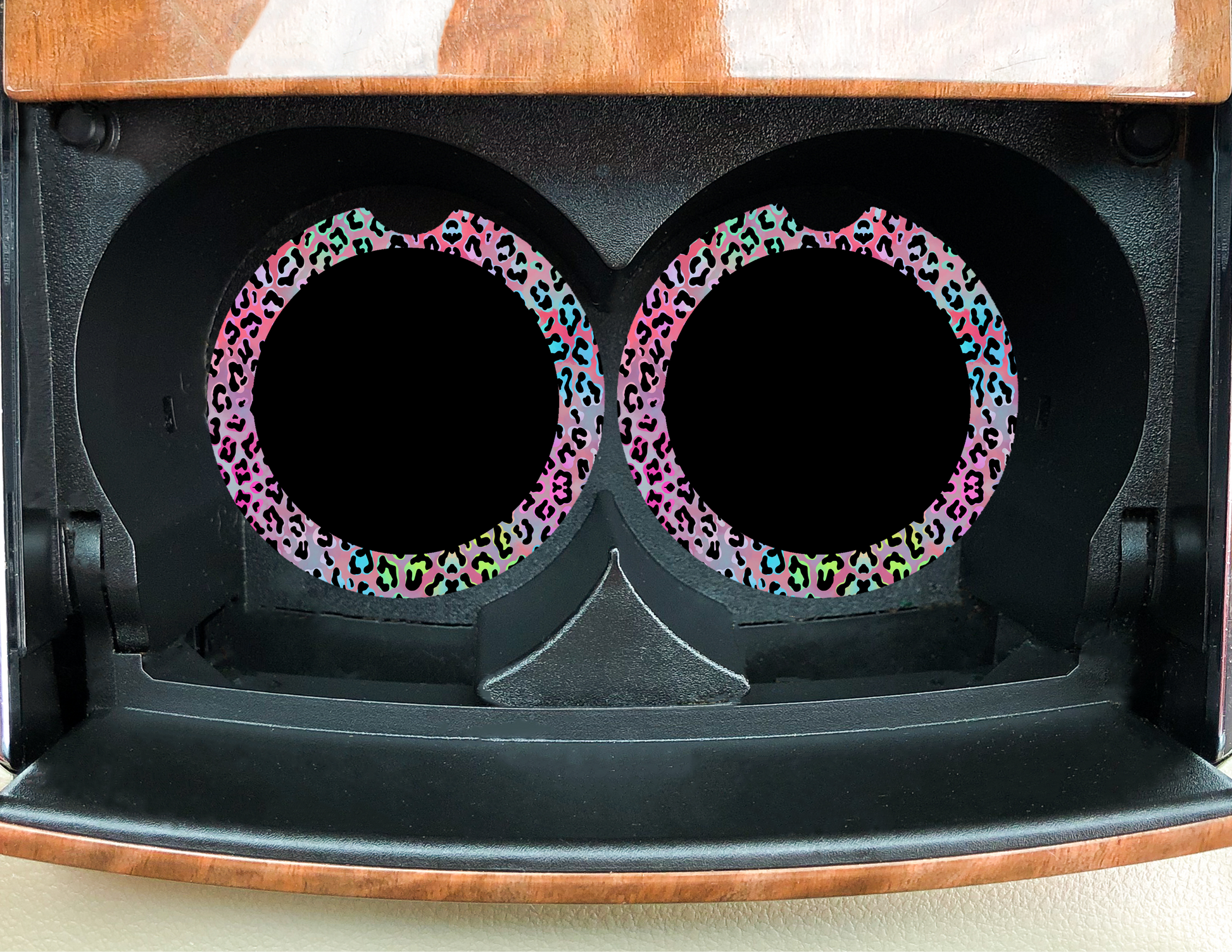 Rainbow Leopard Black Center Car Coaster